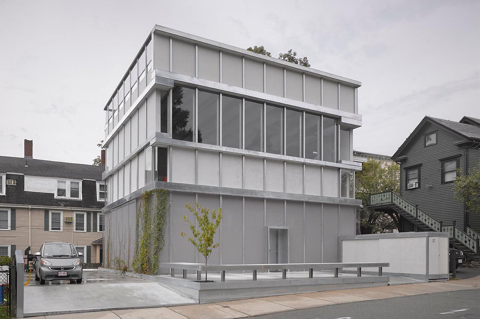Cyclopean House is built, using the vigor of the builder, and the ingenuity of the engineer, to start a journey from the place of its manufacture –Madrid- to the place where it can definitely lie -on top of an existing garage, the ugly duckling of the area, located in a calm residential neighborhood of Brookline. The one-story gloomy construction accommodates the parking, workshop and service spaces, following its basic structural logic, and is completed with the big room built on it by the assembly of the large prefabricated elements that rest after their long transatlantic voyage. This open-plan double-height living area includes the main domestic activities and enables the transformation of the residual building into a two-story residential unit, technologically and spatially adapted to its time and the life of its users.